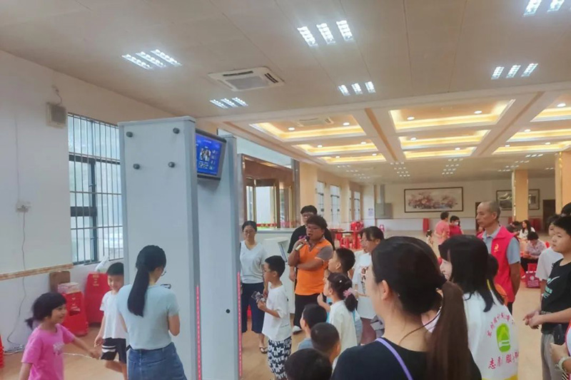 廣東安盾響應東莞市科協號召,暑期給學生展示科學相關的先進技術,公益活動之反恐技術裝備科普,安盾集團X光機、手機安檢門、手機探測器、危險液體檢測儀、金屬探測器等。